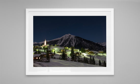 This image captures the stillness of alpine life after dark — calm, atmospheric, and deeply comforting. A moment where time seems to slow, wrapped in winter silence and warm light.