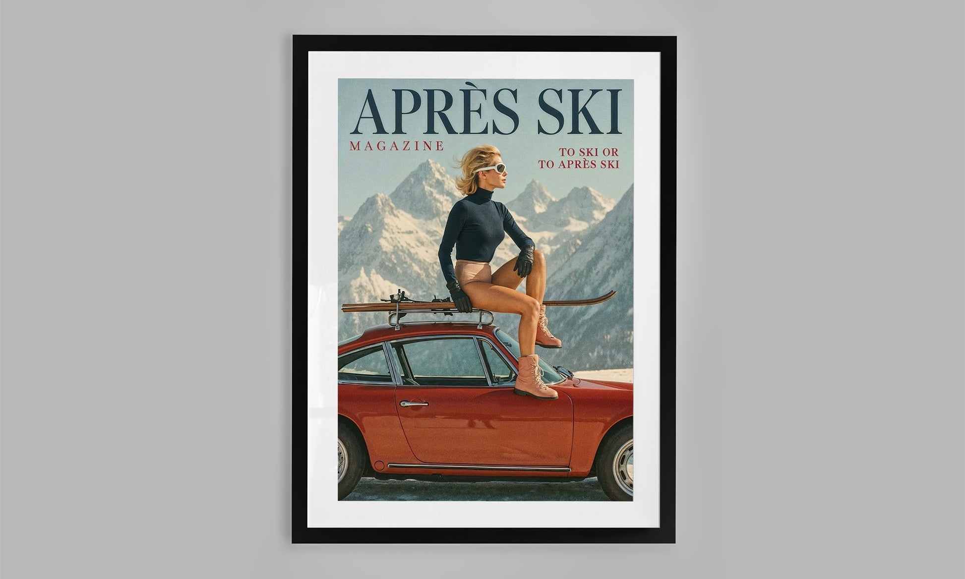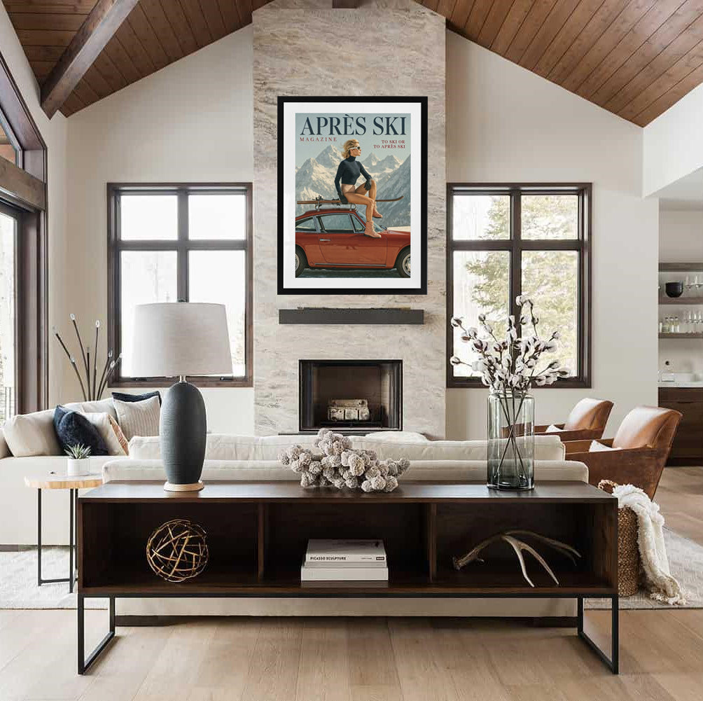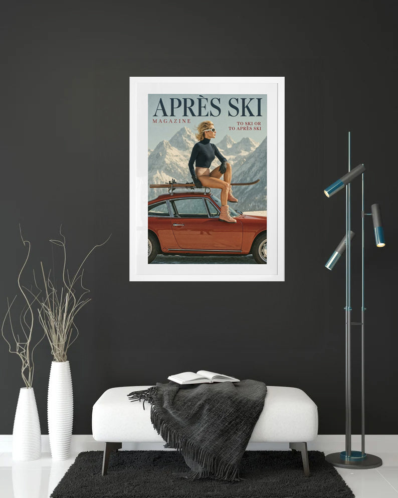 Printed on premium archival paper, this piece brings European glamour and mountain allure to any space — from chalet walls to coastal lounges.