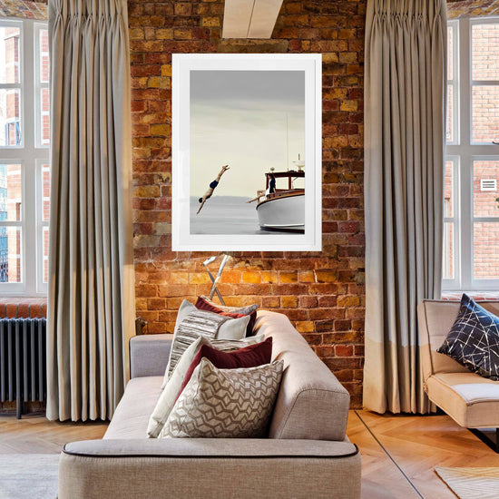 One figure poised, calm and elegant. Another mid-air — all motion, confidence, and freedom. Set against glassy water and an endless horizon, this image captures the quiet luxury of life lived unhurried, where time slows and style feels effortless.