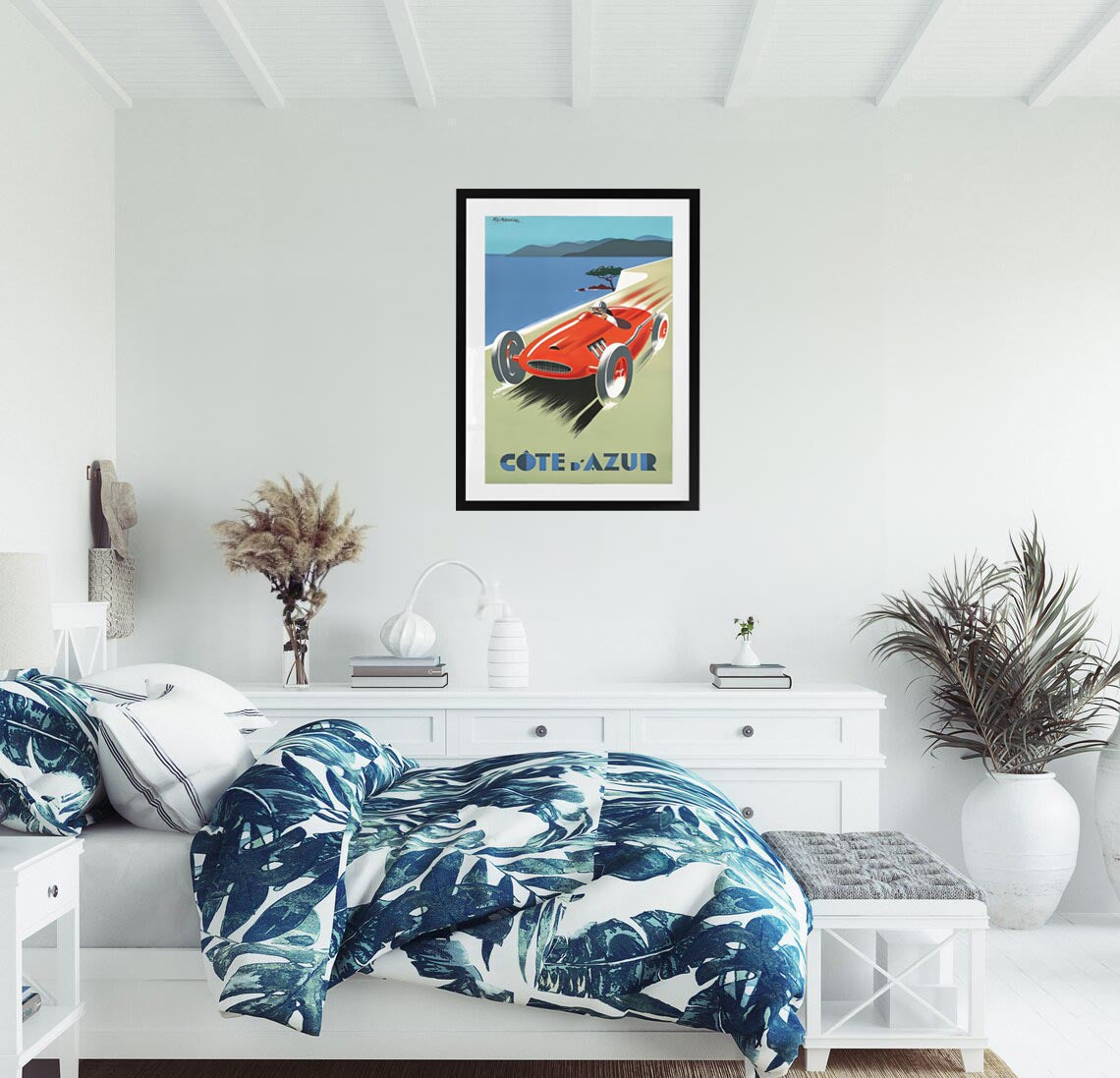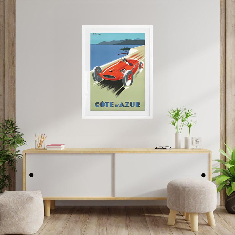 The Blue Coast Cote d' Azure Vintage French Race Car Poster.