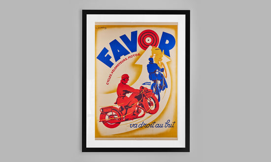 Favor hits the target! This striking graphic shows the Favor product line of motorcycles and bicycles, all hitting the bullseye.