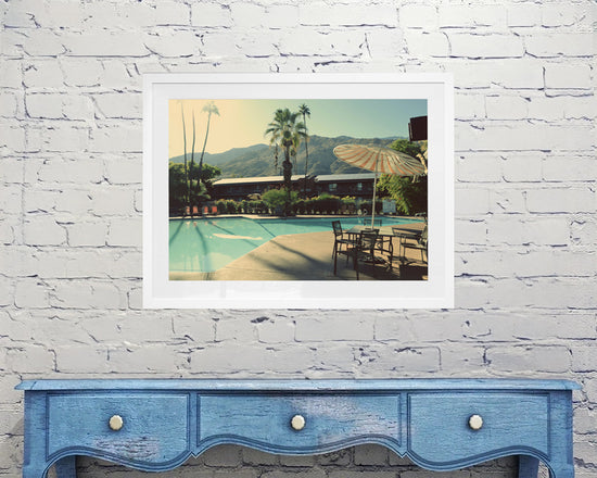 A quiet Palm Springs afternoon captured in its finest moment—soft desert light, wandering palm shadows, and that unmistakable retro-resort charm. This print brings the warm hum of summer holidays into your home: the scent of sunscreen, the clink of poolside glasses, the lazy stillness of a day with nowhere to be.