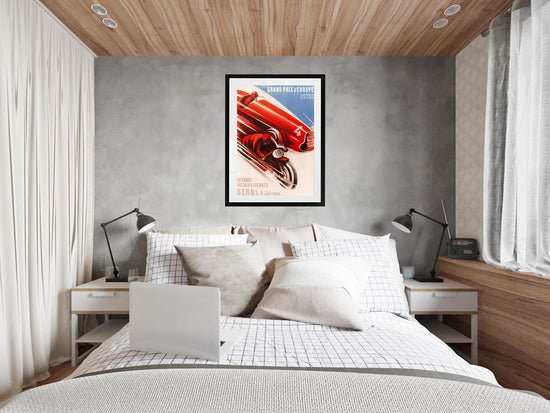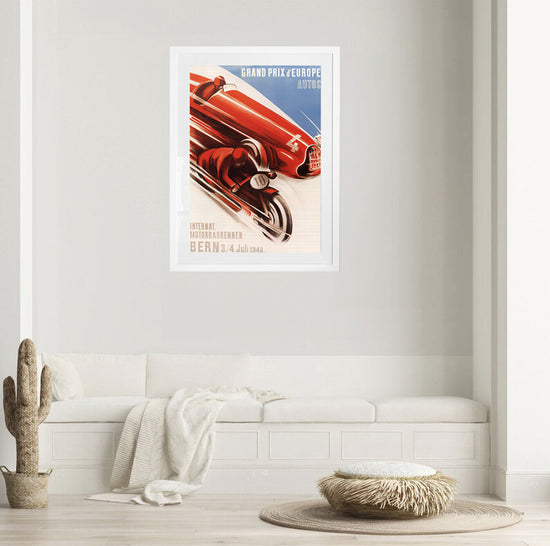 The vibrant colors and dynamic design of the poster evoke a sense of anticipation and adrenaline that comes with watching top drivers compete on the challenging streets of Bern. The Swiss city provides a picturesque backdrop for this high-octane event, adding an extra layer of charm to an already thrilling experience. As fans eagerly await the arrival of some of the best drivers in Europe, including legends from countries such as France, Italy, Germany, and more, there is no doubt that this Grand Prix will be one for the books. From roaring engines to nail-biting finishes, spectators can expect nothing short of pure excitement throughout this action-packed weekend. Whether you're a die-hard fan or simply appreciate the beauty and history behind motor racing events like these, this print serves as a timeless reminder of an era when speed ruled supreme on European streets.