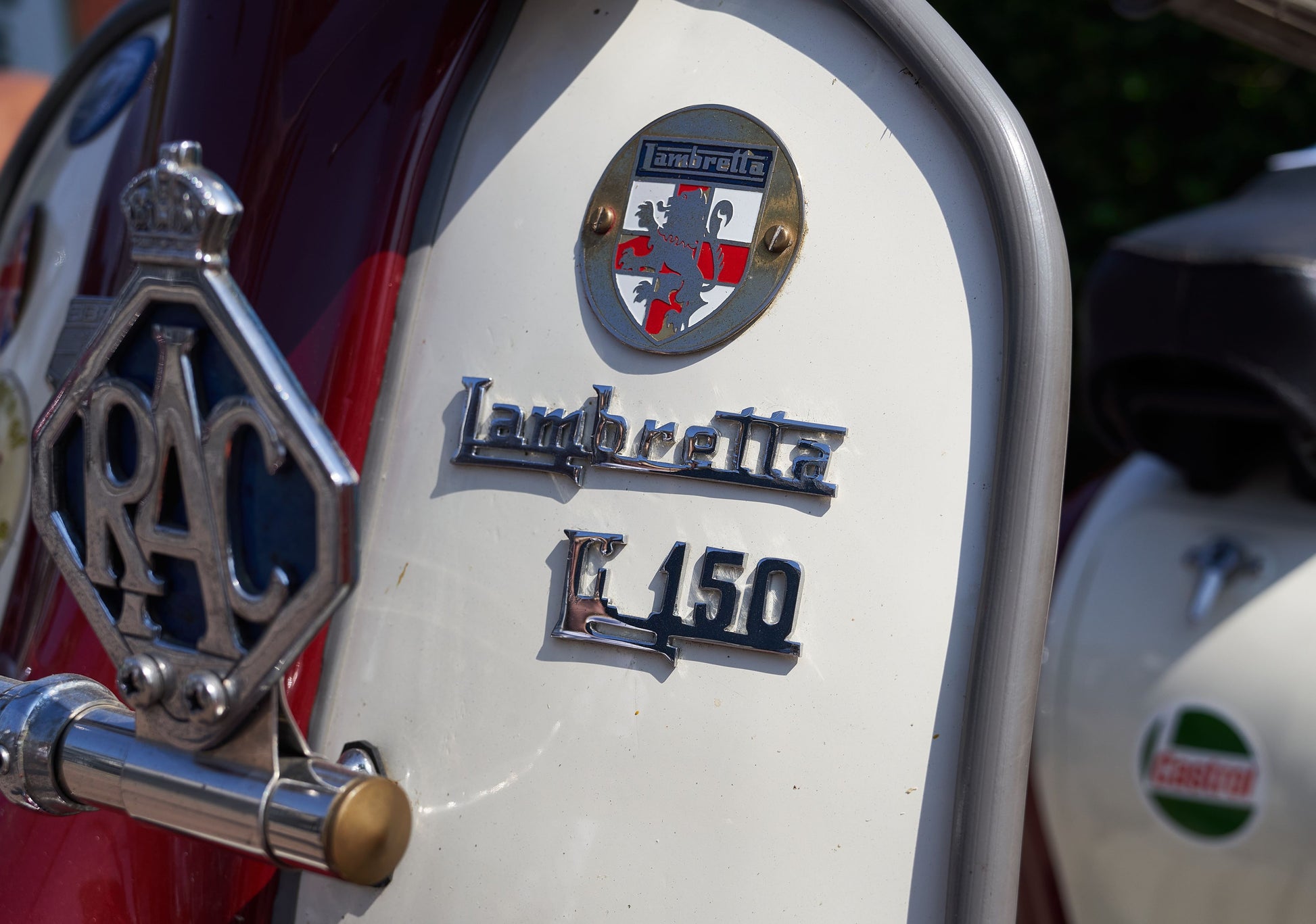 This photograph captures the unmistakable elegance of the Lambretta Li 150 — cream bodywork, polished chrome, and that unmistakable badge that once ruled European streets.