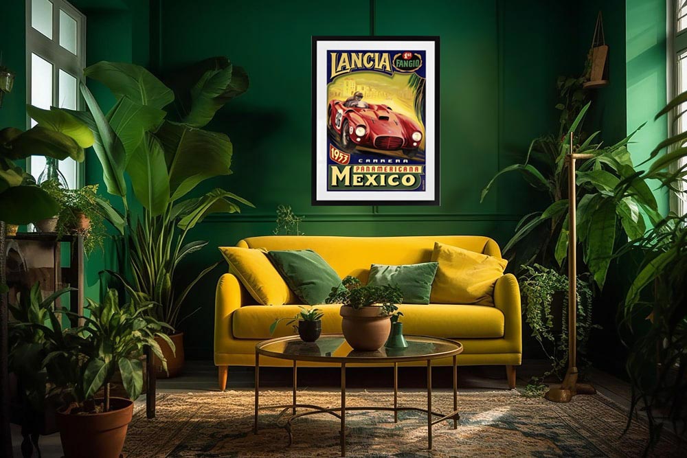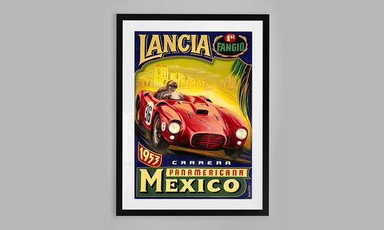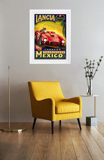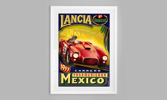 This poster if of famous Argentinian driver Juan Manuel Fangio winning the race in a Lancia D24.