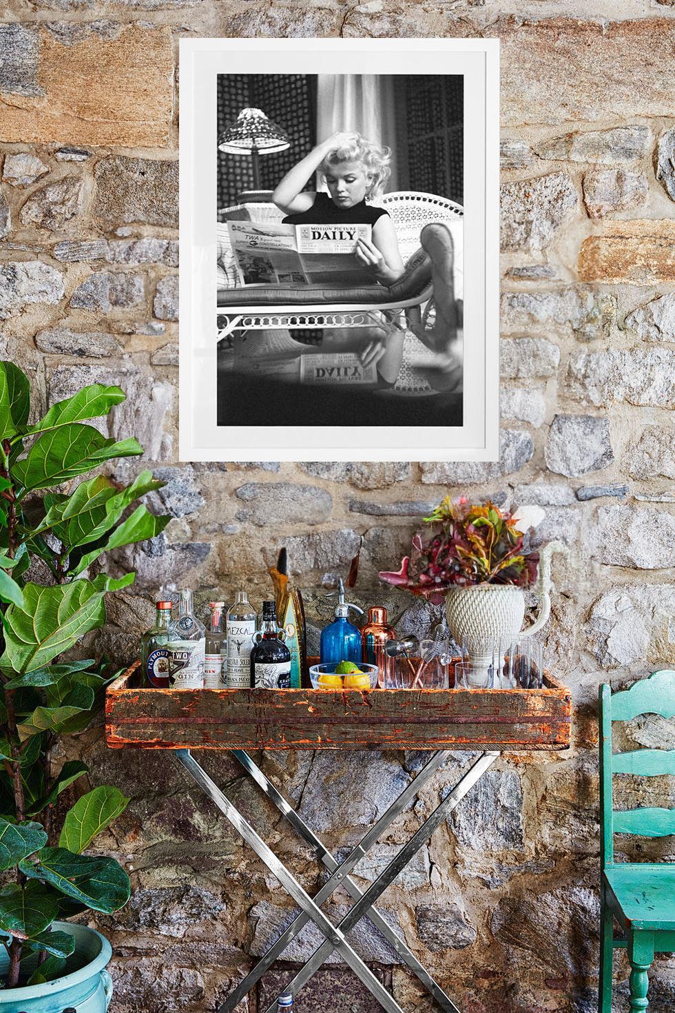 Actress and icon Marilyn Monroe reads the newspaper "Motion Picture Daily" as she relaxes on a couch in her hotel room at the Ambassador Hotel on March 24, 1955 in New York City, New York.