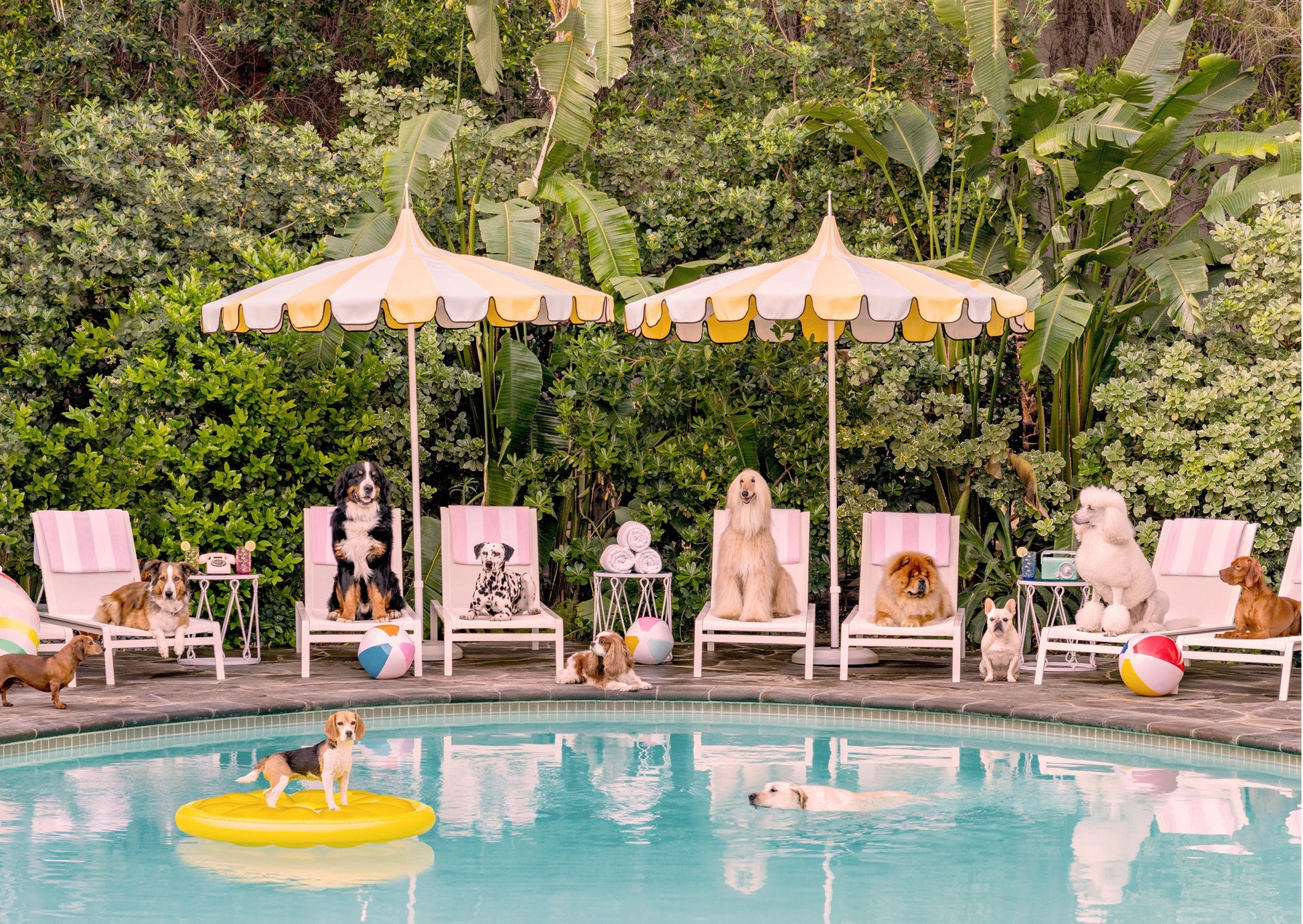 Dogs lounging around the Pool at The Parker Hotel, Palm Springs
