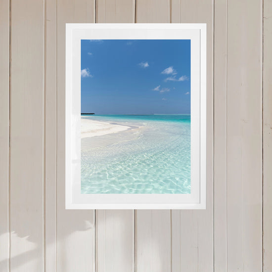 On a secluded stretch of beach, the lagoon lies still as glass. The water glows in translucent shades of turquoise, melting gently into the horizon where reef meets sky. In the distance, overwater villas hover like a mirage — private, peaceful, impossibly serene.