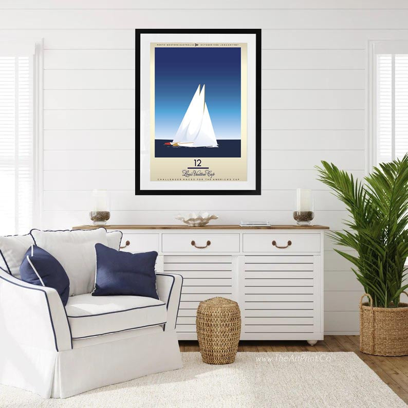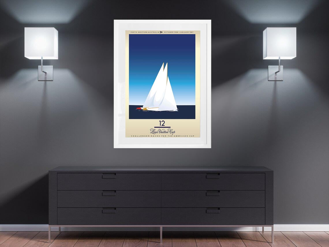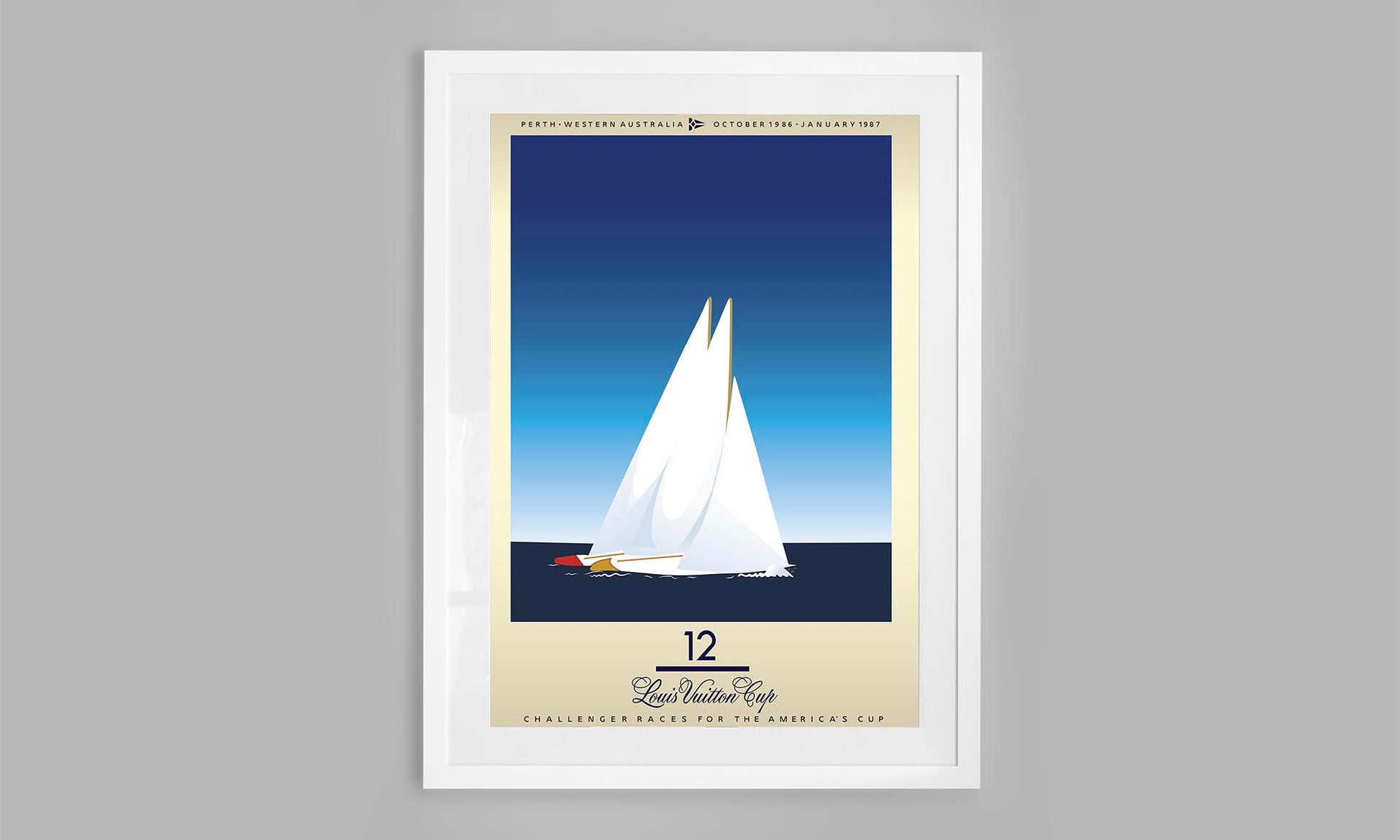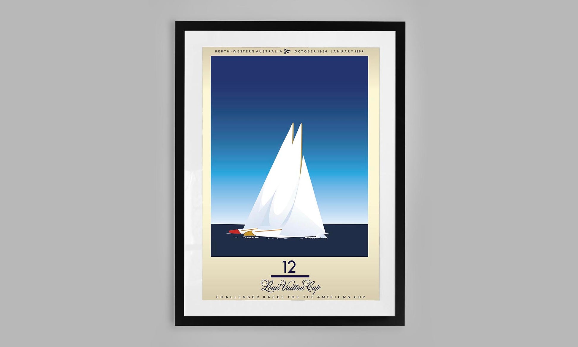 Celebrate the refined world of competitive sailing with The Challenger's Course, a bold and minimalist tribute to the 1986–1987 LV Cup held in Perth, Western Australia. This officially styled artwork evokes the precision and poise of the America’s Cup challenger races, where high design meets high seas.