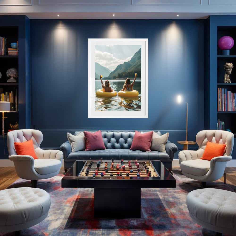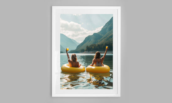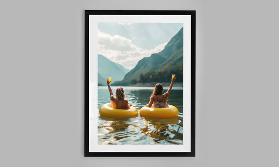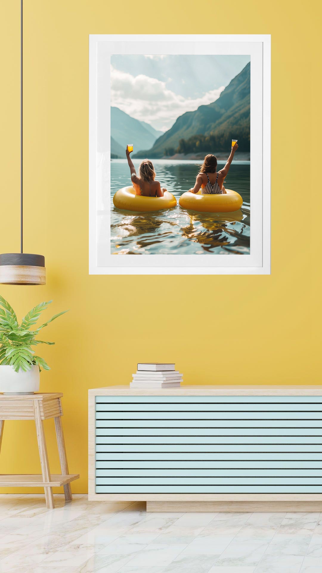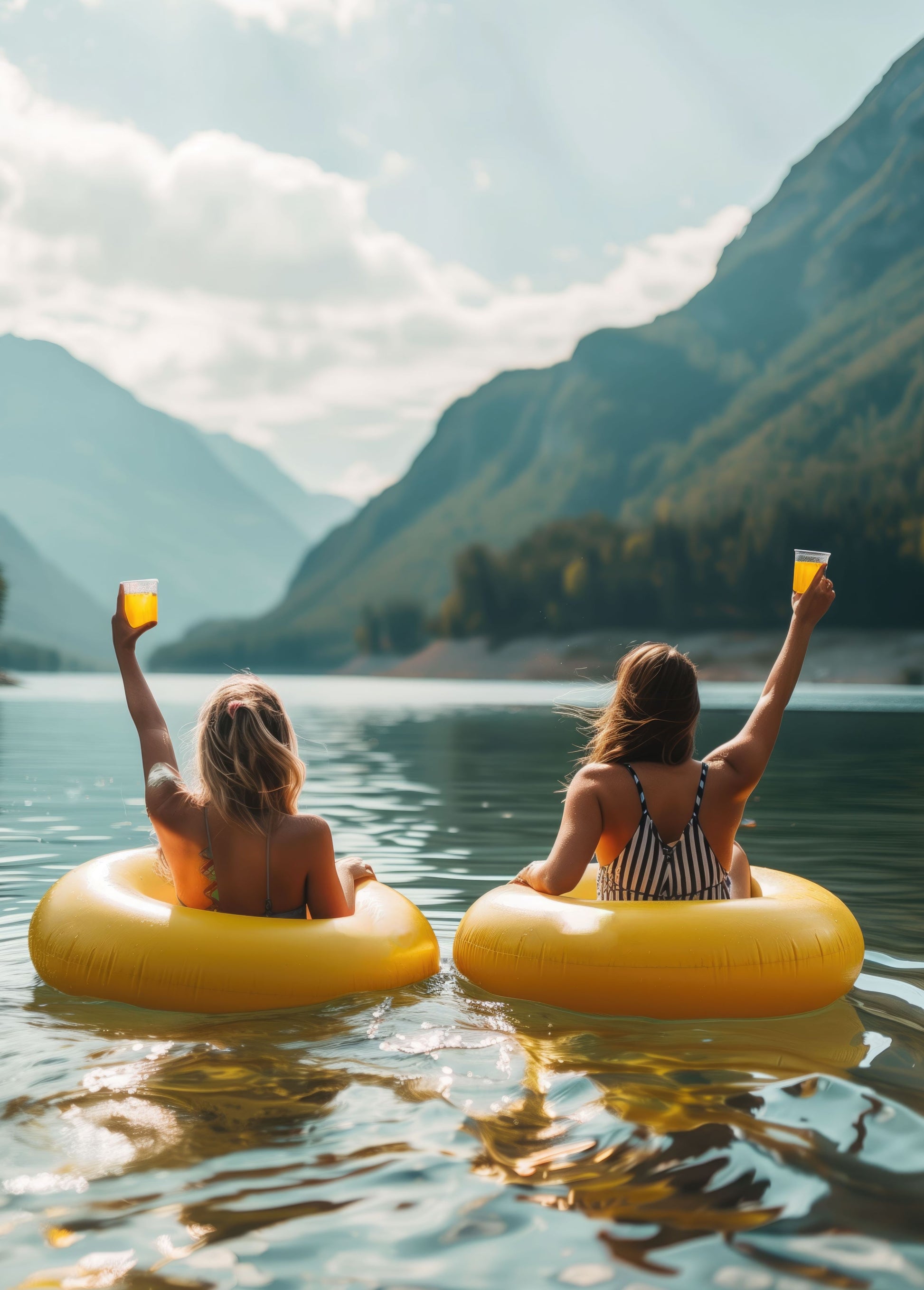 Set against a dramatic mountain backdrop, this sun-drenched image captures the kind of summer moment you wish could last forever. Drinks raised to the sky, feet drifting in cool alpine water, and the quiet luxury of an unplanned afternoon.