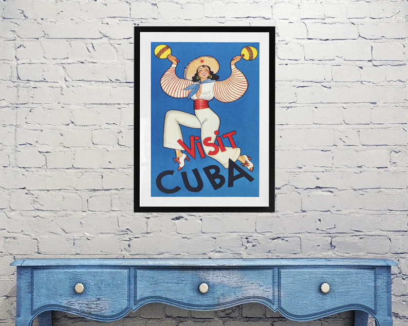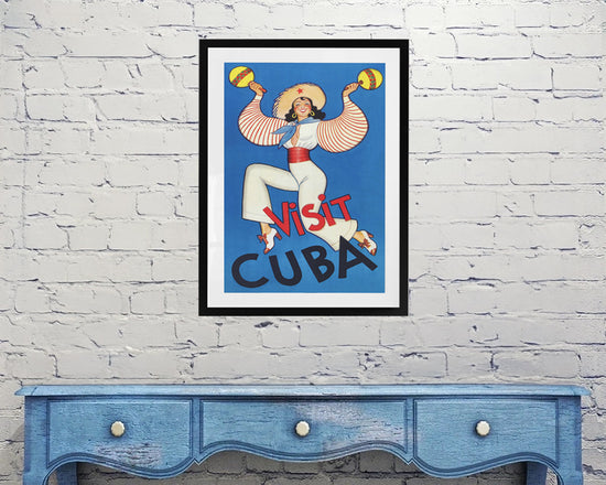 Step into the rhythm of the Caribbean with this joyful vintage Cuba travel poster. Bursting with colour, music, and movement, it captures the island’s vibrant spirit — from carnival energy to tropical sunshine. A perfect piece of wall art for those who believe life is best lived to the beat of the maracas.